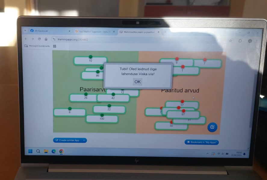 Lisaks on tunnis antav tagasiside minu jaoks oluline ka õpetajana, kuna see annab vahetu ülevaate õpilase hetkeseisust, arusaamadest ja raskuskohtadest. Õppijate reageeringud ja edenemine aitavad mul hinnata valitud õppemeetodite sobivust ning vajadusel kohandada õppe sisu, tempot või töövorme, seeläbi kujuneb hindamisest vastastikune ja dünaamiline protsess, mis toetab nii õppija arengut kui ka minu professionaalset refleksiooni ja õpetamispraktika teadlikku kujundamist.