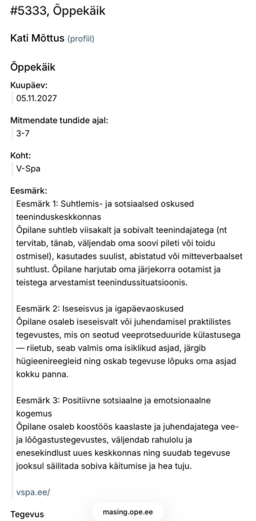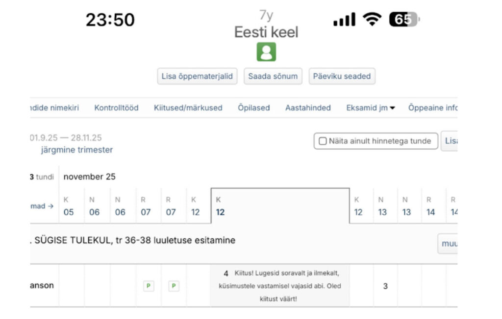 Sama lähenemist kasutan ka igapäevases dokumenteerimises Stuudiumis. Kuna töötan ühe õpilasega, saan anda väga täpset ja personaalset tagasisidet, lisades hinde või sissekande juurde kommentaari, mis kirjeldab just tema individuaalset arengut ja edusamme. See annab lapsevanemale realistliku ja sisulise ülevaate sellest, kuidas tema lapsel tegelikult läheb, ning aitab õpilasel endal kogeda, et tema pingutusi märgatakse ja väärtustatakse.