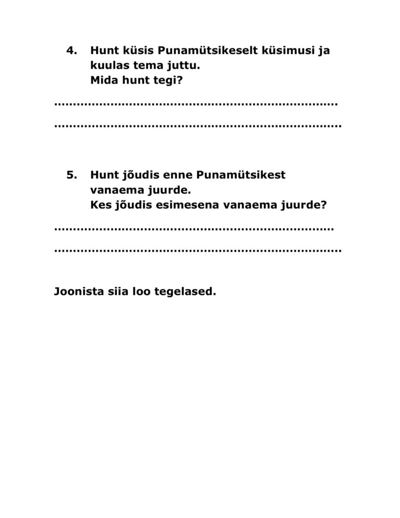 Teksti loomisel toetasime protsessi samm-sammult: esmalt kirjeldas õpilane pilti suuliselt, seejärel panime koos kirja märksõnad ning alles seejärel hakkas õpilane lauseid moodustama, vajadusel modelleerisin lauseloomet ning kasutasin suunavaid küsimusi, et aidata õpilanel mõtteid struktureerida. Õpilasele andsin valida, kas kirjutab teksti käsitsi või arvutis, mis toetas tema enesemääratlust ja tööviisi valiku oskust.